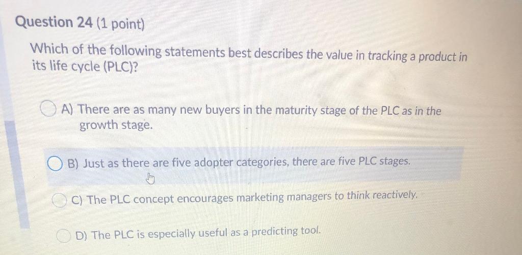 Solved Question 24 1 Point Which Of The Following Chegg Com